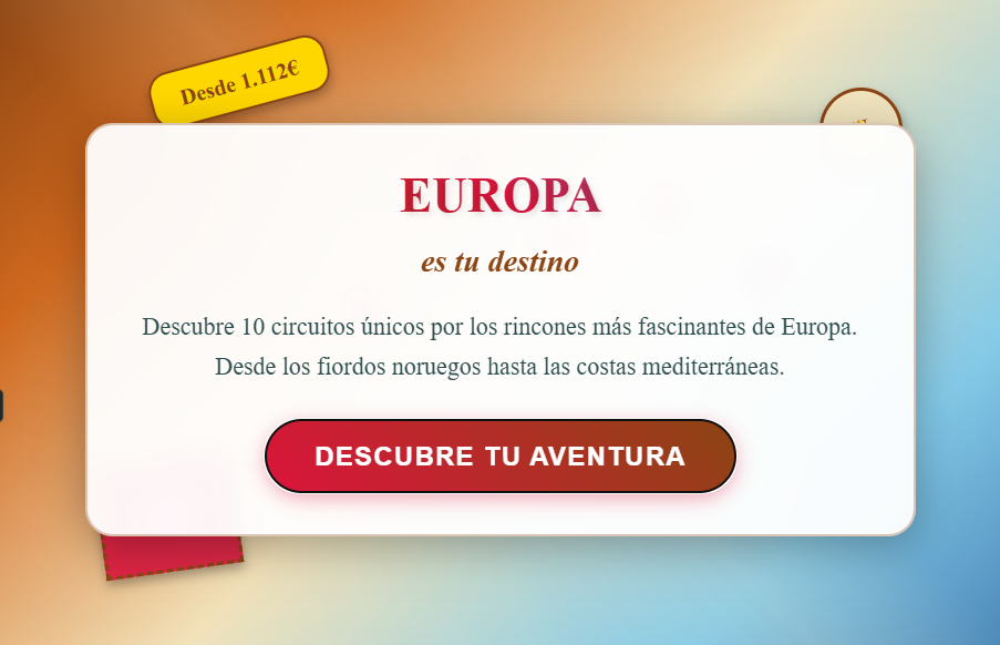 ✈️ DESCUBRE EUROPA ESTE VERANO Circuitos Especiales que Despiertan Tus Sentidos ¿Sueñas con perderte entre paisajes de ensueño, sumergirte en culturas milenarias y crear recuerdos que durarán toda la vida? Este verano, te invitamos a vivir una experiencia única con nuestros Circuitos Especiales por Europa – cuidadosamente diseñados para viajerosLeer más